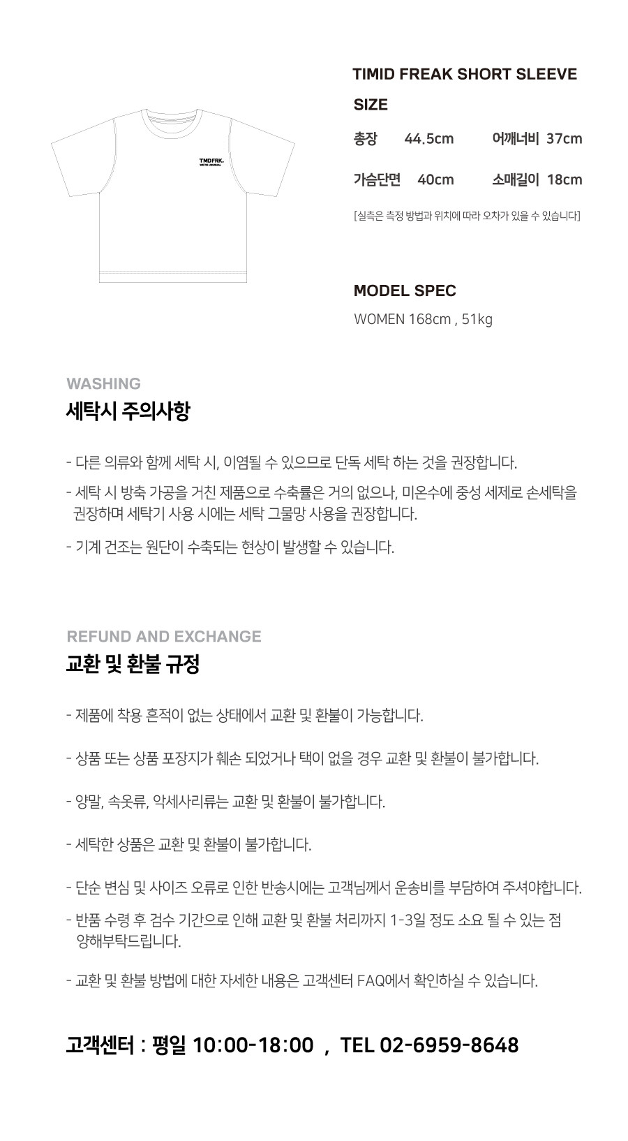 티미드프리크 스몰 로고 크롭 티셔츠는 앞과 뒤가 대비되는 색상과 로고 디자인으로 단독으로 착용시에도 포인트가 되어 주는 제품입니다.